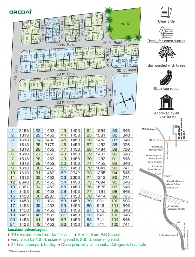 Bhaggyam Gopalakrishnan Nagar is just a 10 min drive from Tambaram and located in a vibrant neighborhood surrounded by schools, colleges and hospitals. Easy access to all basic amenities and a green neighbourhood, makes it a perfect spot to build your dream home.